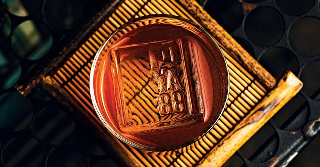 É o okinawa old fashioned (R$ 55,00). Na fórmula, entram uísque, o bolinho Choco Pie, calda de mochi com shoyu e Angostura.