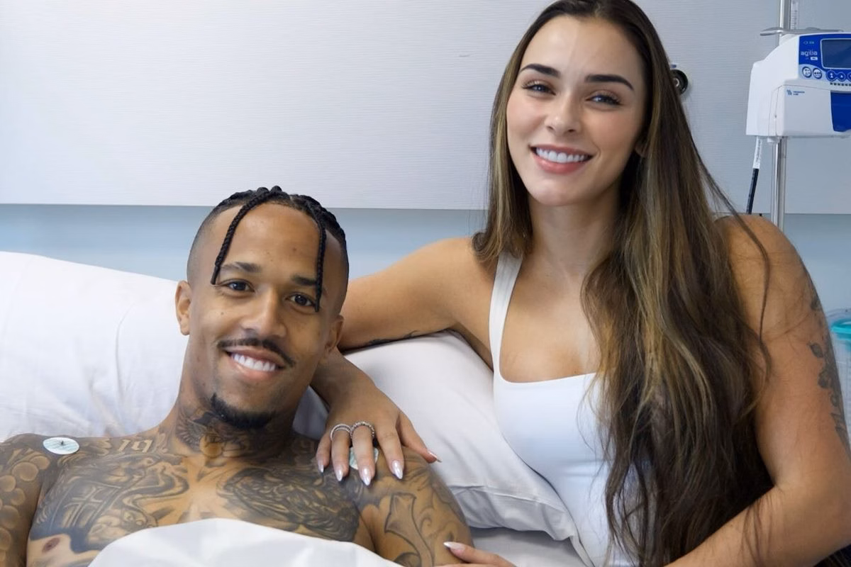 Tayna Castro presta apoio a Éder Militão após cirurgia no joelho