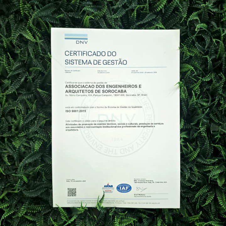 A Associação de Engenheiros e Arquitetos de Sorocaba (AEAS) acaba de alcançar um marco histórico: tornou-se a primeira associação de engenheiros e arquitetos do Estado de São Paulo a conquistar a certificação ISO 9001, norma internacional que atesta a qualidade na gestão de processos. O reconhecimento foi concedido pela DNV, referência em auditoria, gerenciamento de riscos e sustentabilidade.