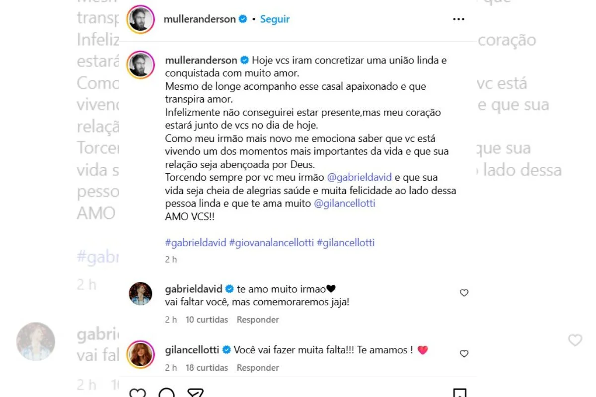 Anderson Müller explica ausência no casamento do irmão Gabriel David