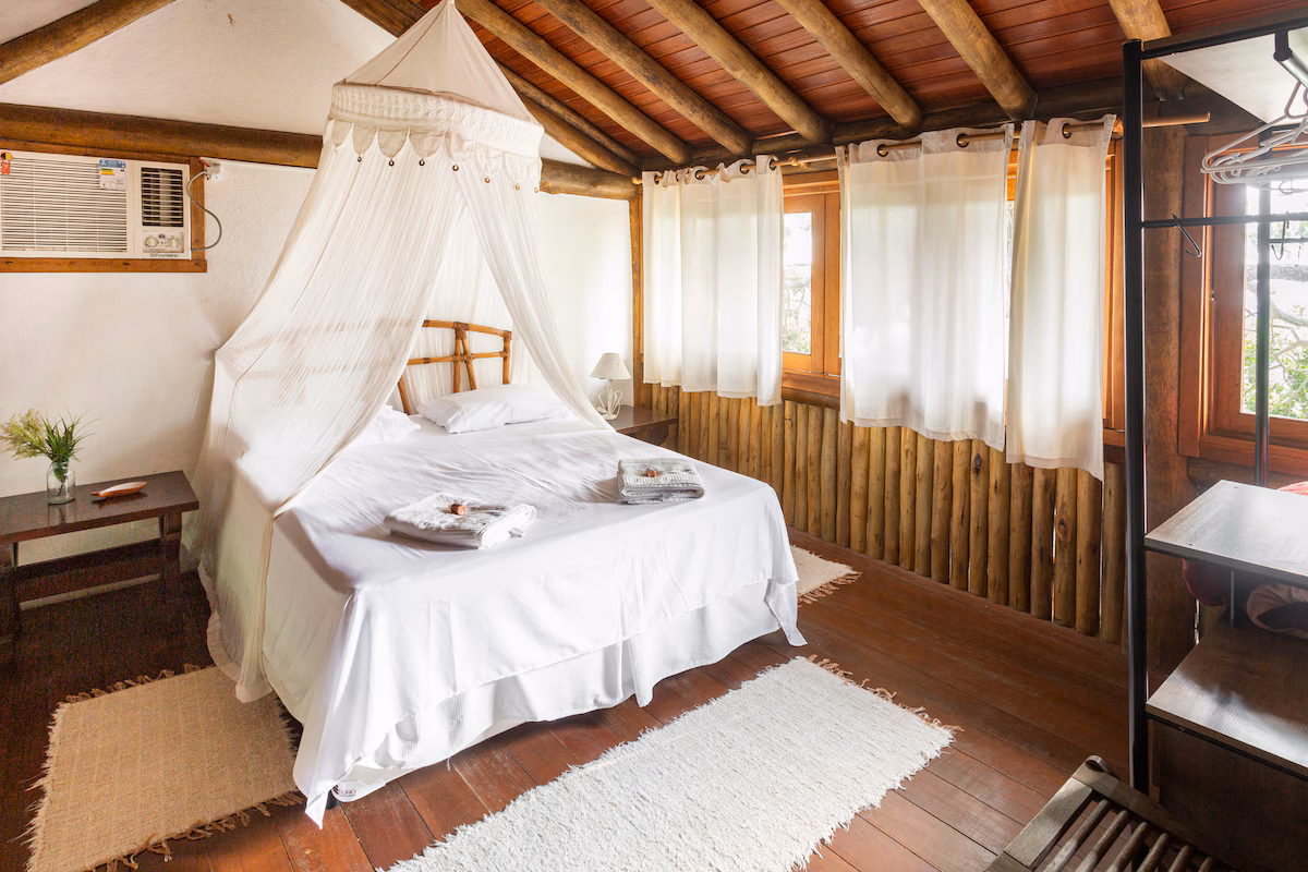 Comentário de quem já alugou:O lugar é incrível, é uma cabana super estilosa que me lembrou Trancoso, na Bahia. A hospedagem fica no meio do verde, em frente ao mar, a 20 passos da areia da praia. É uma beleza surreal! Além de ser super bem equipado, o restaurante da família tem uma comida esplêndida. Eu amei tudo e quero voltar muitas vezes. Vale cada segundo.” – Cintia, setembro de 2025.