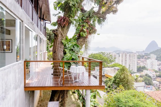 A casa: Com vista privilegiada para o Corcovado e o Pão de Açúcar, o apartamento tem três suítes com ar-condicionado e mesa de escritório, cozinha, sala de estar, sala de jantar e duas varandas por onde passam tucanos, beija-flores, papagaios e pequenos macacos. A casa dos anfitriões, que fica embaixo da acomodação, tem árvores frutíferas, piscina e churrasqueira que podem ser compartilhadas com os hóspedes. Reserve aqui.
