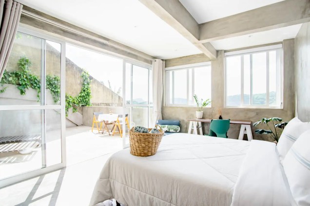 A casa: É praticamente unânime entre quem já se hospedou nesta casa que o seu grande diferencial é a vista: repleta de janelas grandes e em uma localização privilegiada, é possível ver o mar e a natureza do Rio de Janeiro de quase qualquer ângulo – com destaque para o ambiente da jacuzzi. Disponível para até quatro pessoas, a acomodação tem design moderno e fica a cinco minutos a pé da praia de Itacoatiara. Reserve aqui.
