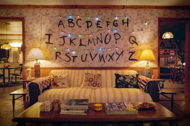 A hospedagem é repleta de móveis e objetos vintage, que incluem jogos de tabuleiro, fitas VHS, discos de vinil e bugigangas garimpadas para dar vida ao ambiente. Como não poderia faltar, uma das paredes exibe uma réplica das luzes de Natal e do alfabeto escrito na parede que Joyce usou para contatar Will na primeira temporada.