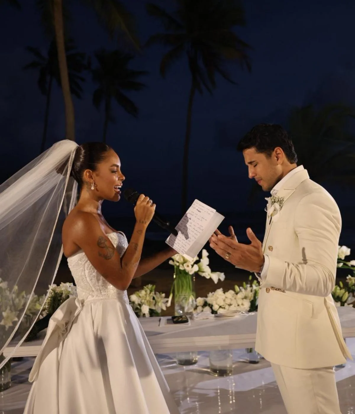 O cantor Kevi Jonny também não conteve a emoção ao compartilhar seus votos, lembrando o início do relacionamento, quando conheceram-se durante um show em Porto Seguro: