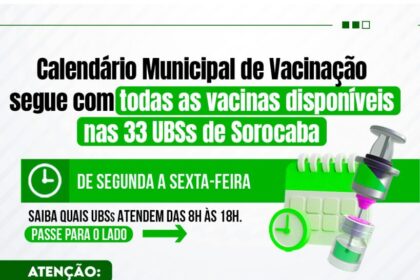 Calendário Municipal de Vacinação segue com todas as vacinas disponíveis e horário estendido de atendimento