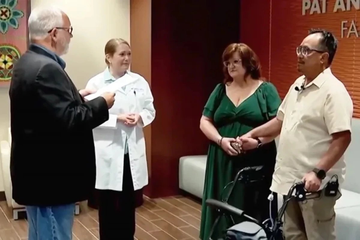O casal texano Jesus Jessie Parra e Kelly St. Pierre se casaram no Baylor University Medical Center em Dallas, no dia 18 de abril, segundo informações da NBC DFW.