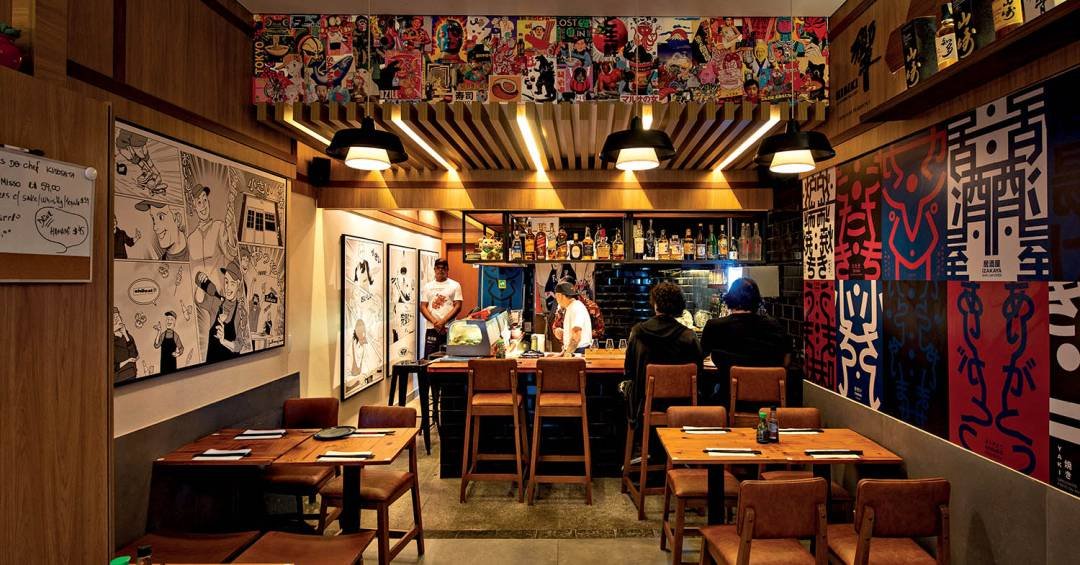 O Chiisai Izakaya, aberto em novembro, é um bar japonês bom de drinques. Enquanto a maioria dos endereços de petiscos asiáticos foca mais nas doses na hora de beber, a casa dos Jardins investe também nas misturas. Elas saem do balcão, onde, pela falta de espaço, se conciliam bar e cozinha — aperto que também se repete no salão, com parte das banquetas sem encosto (abençoado seja o santo da lombar), decorado com pôsteres de cultura pop nipônica. Elaborados pelo bartender consultor Ricardo Takahashi, o Japorês, os coquetéis são preparados no dia a dia por Mateus Ribeiro. O jaspion (gim, suco de limão-siciliano, wassabi, tônica e hortelã; R$ 45,00) é um refresco sutil, e o national kid (uísque, vermute seco, Campari e licor umeshu; R$ 79,00), um gorozinho mais alcoólico delicioso para a saideira. Os acepipes são criação do sócio Alexandre Saber (Sassá Sushi) e do chef Wilson Kinoshita, o Sallada. Item exemplar e sazonal, o arenque marinado ao pesto de shissô (R$ 59,00) tem carne firme e toque defumado, com bastante cebola-roxa. A língua cozida (R$ 55,00) também é boa, mas os pedacinhos de foie gras por cima acabam soltando muito óleo após a passada de maçarico. Com o arroz compactado, o oniguiri recheado de pancetta na alga seca nori (R$ 23,00) desmorona ao primeiro toque e traz a carne sem sabor — uma pena. Vale dar uma chance, porém, à grelha a carvão, de onde pulam o milho (R$ 19,00) e a lula com tarê (R$ 34,00).