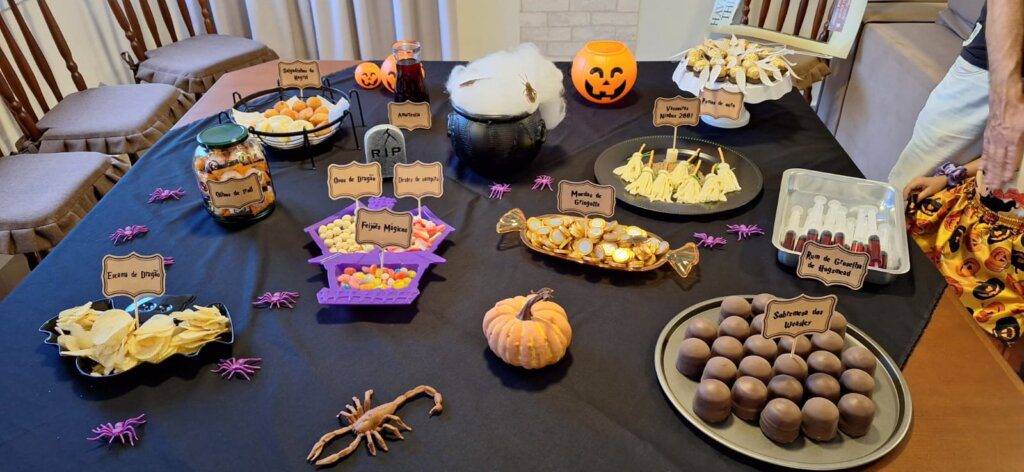 “Quando minha sobrinha nasceu, em 2020, minha irmã se mudou para um condomínio onde os moradores têm a tradição de entregar doces para as crianças no Dia das Bruxas. No início, apenas distribuíamos doces, mas em 2022 decidimos aproveitar a ocasião para reunir a família e nos divertir preparando comidas e decorações temáticas. Acaba sendo também uma oportunidade de interagir com os vizinhos”, declara.