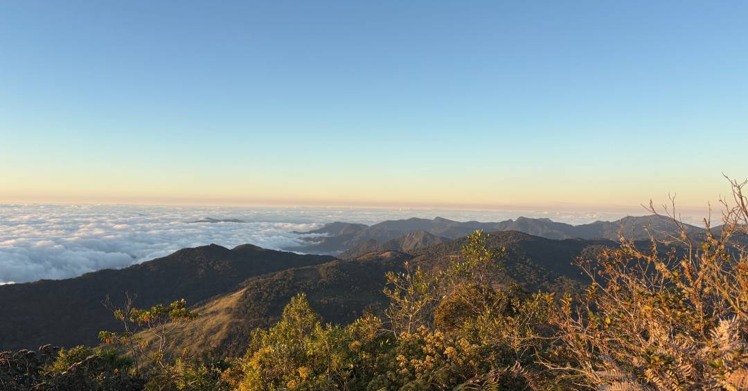 Já fica o aviso: não há como prever se o céu estará aberto ou não e, consequentemente, qual paisagem você irá encontrar ao final da trilha. A guia Cris me contou que às vezes acontece das nuvens irem se dissipando aos poucos, de forma que o visitante presencia tanto o tapete de nuvens quanto a vista para o litoral, mas isso varia.
