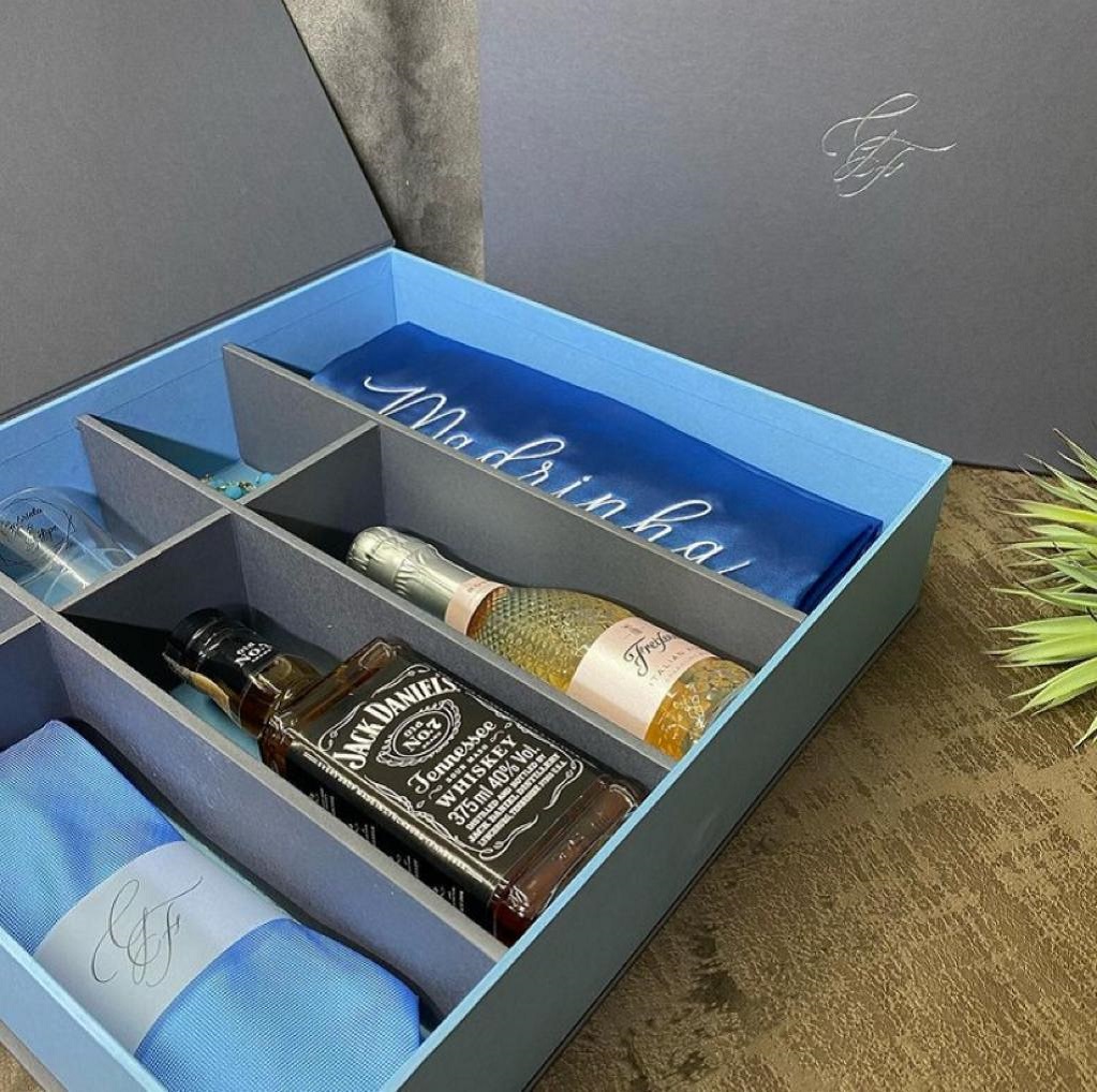 - Caixinha com bebida (vinho, espumante ou cerveja artesanal) e charuto;