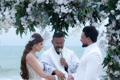 Fotos: ex-BBB Amanda Gontijo se casa à baira-mar, em Trancoso