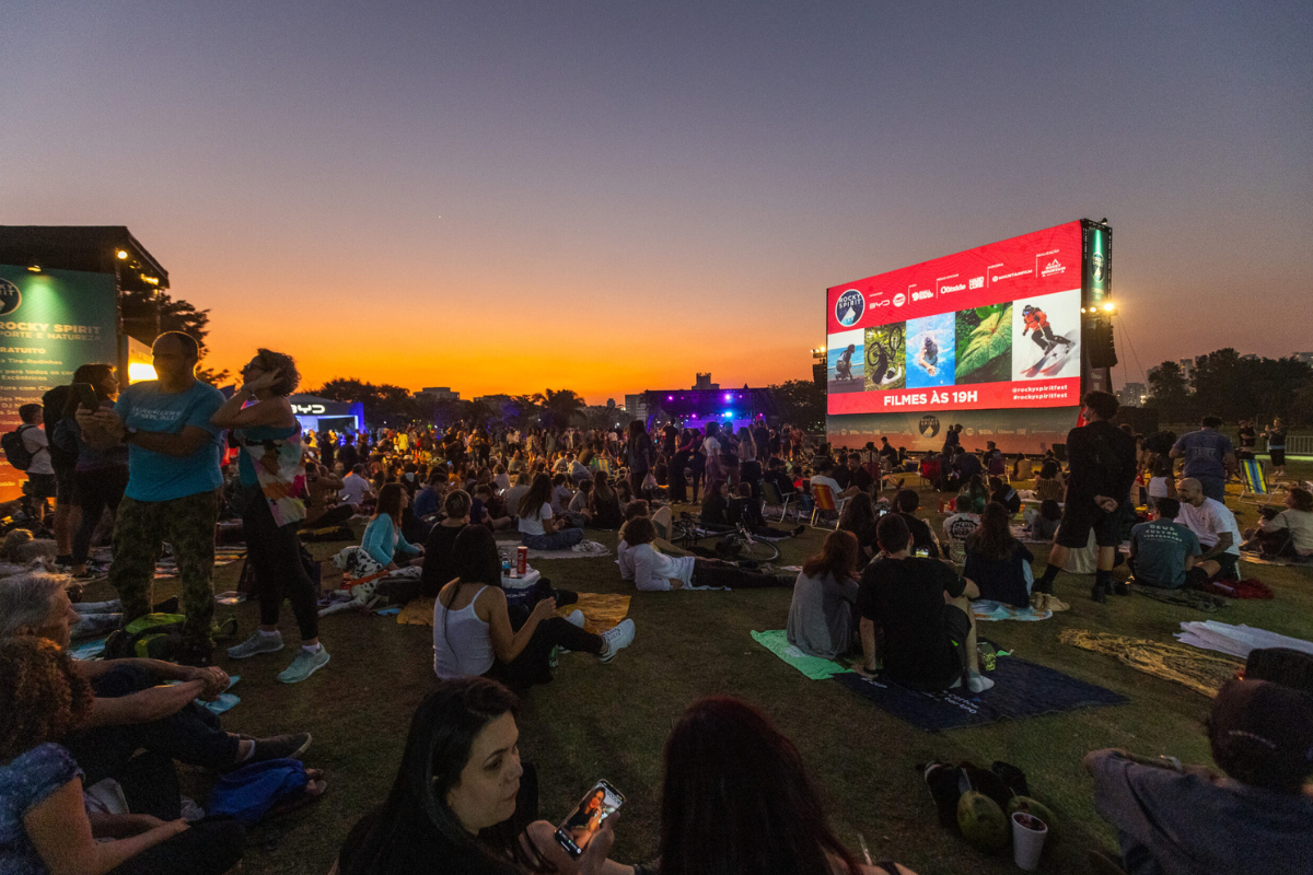 Um dos destaques do Rocky Spirit é a exibição de filmes nacionais e internacionais voltados à vida ao ar livre, esportes e sustentabilidade. As sessões acontecem em um ambiente aberto, no gramado do parque, criando uma experiência diferente para famílias que querem sair da rotina.