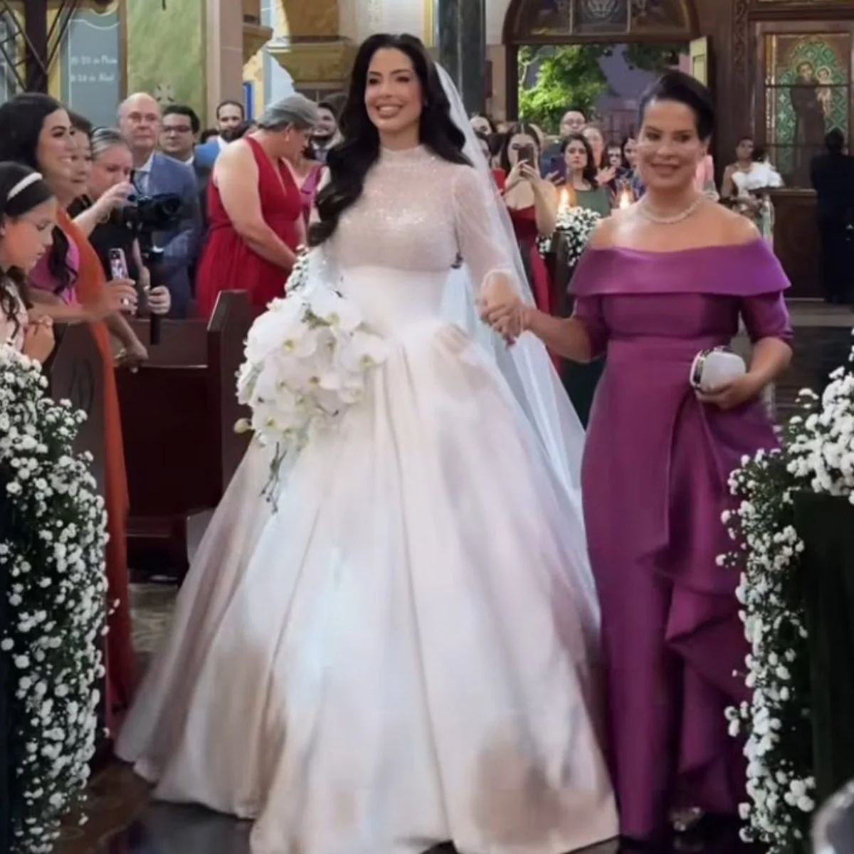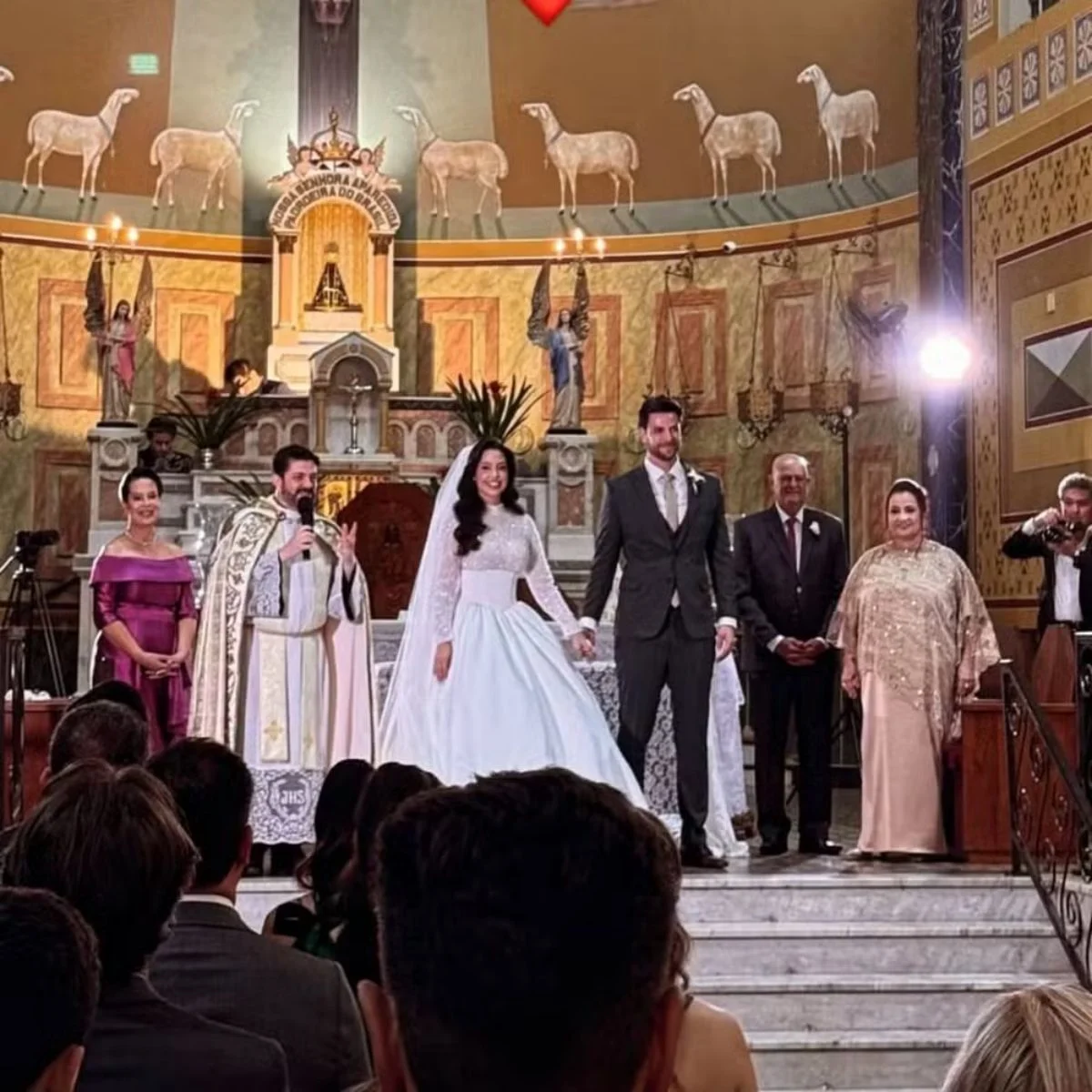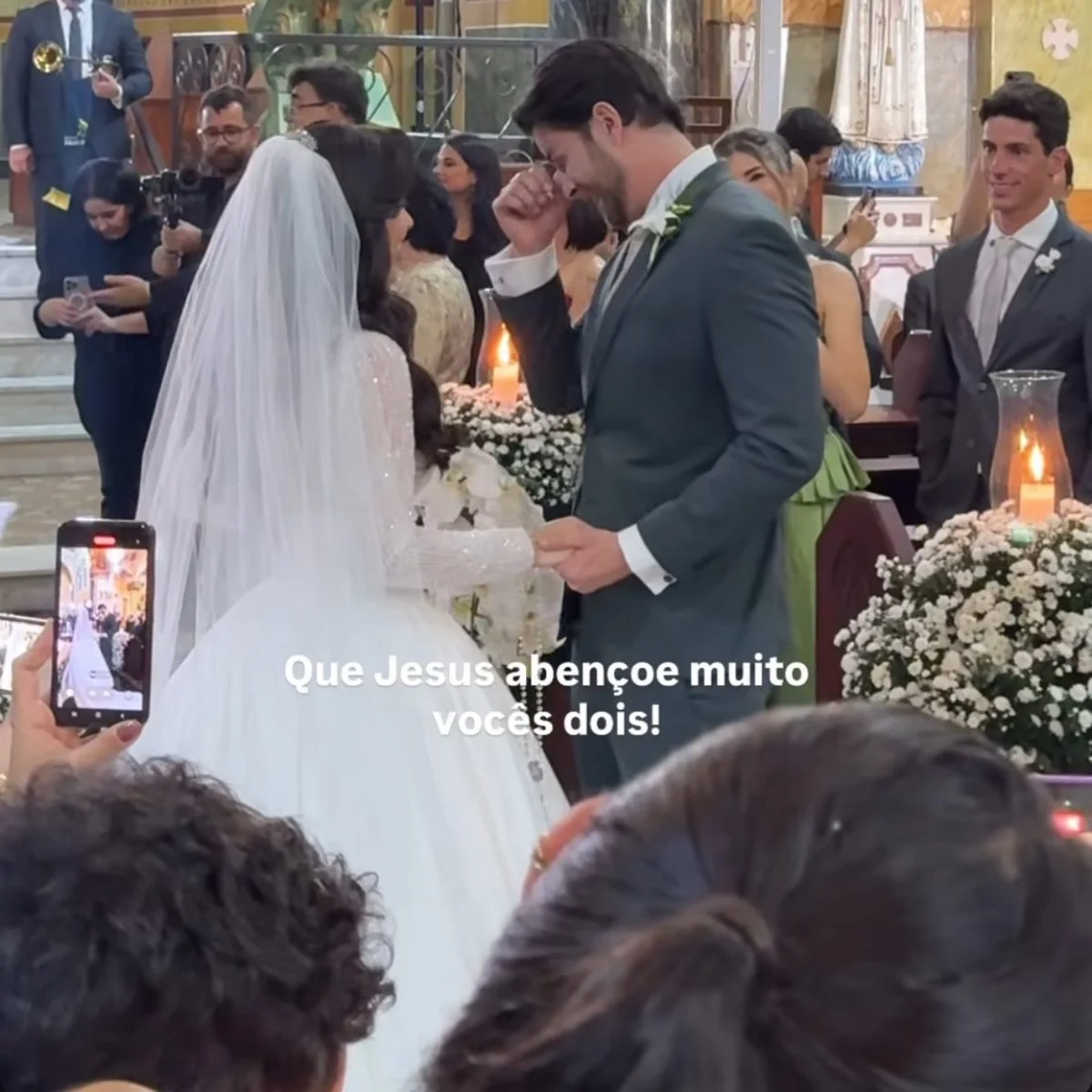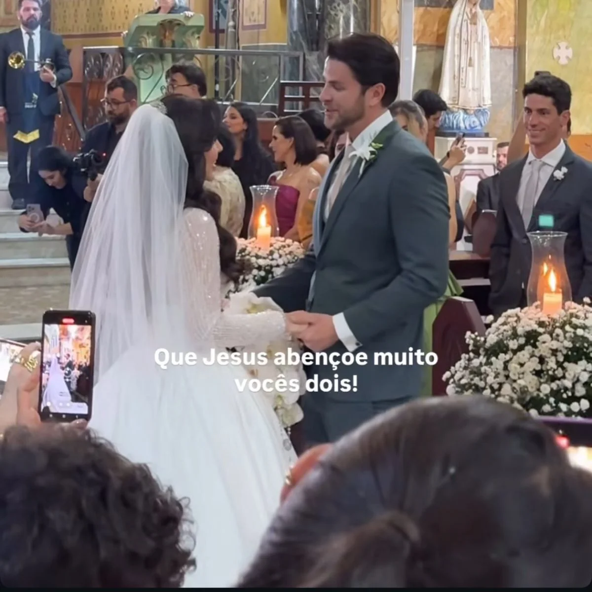 O momento contou com detalhes que emocionaram os presentes. Gustavo entrou na igreja ao som do hino do Palmeiras, clube pelo qual torce, enquanto Laís foi conduzida pela mãe, Cleusania, até o altar.