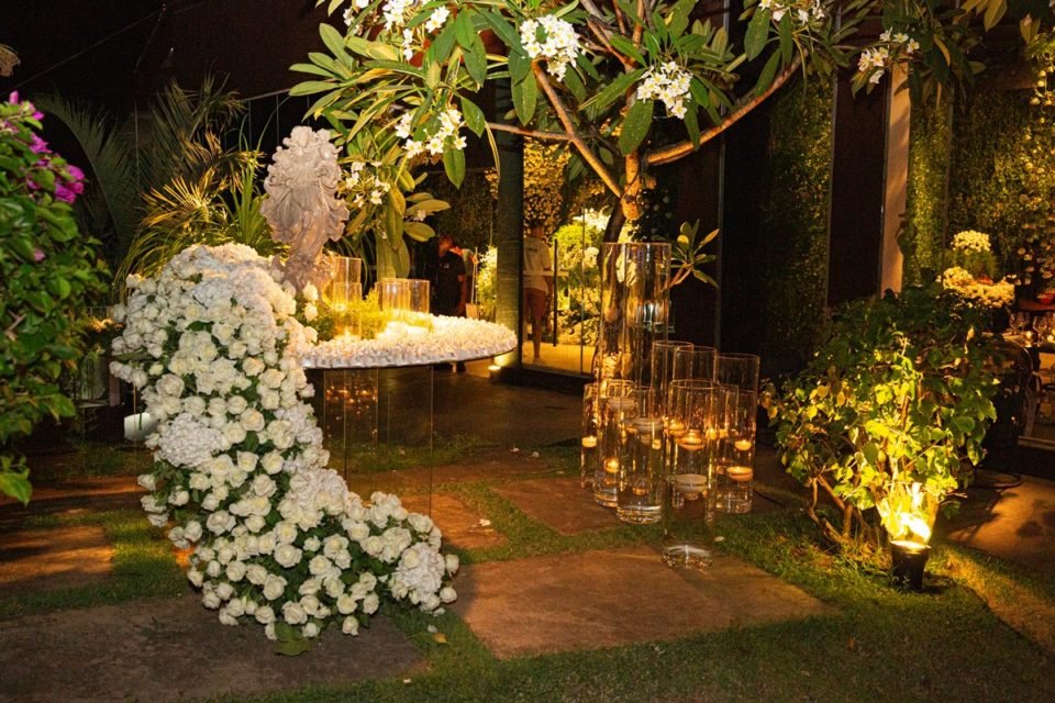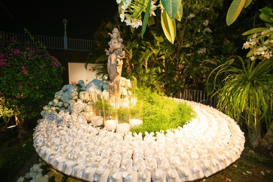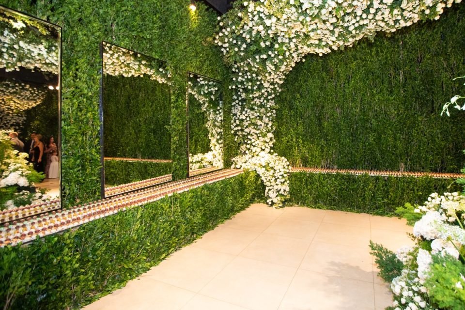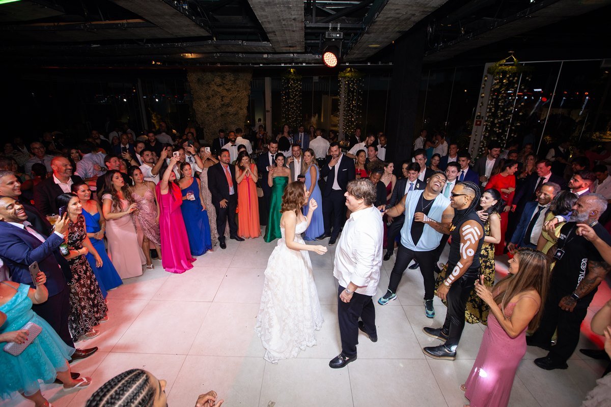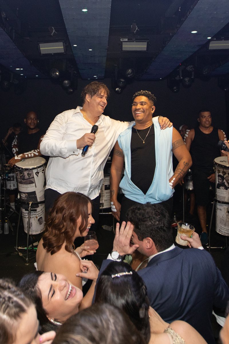 A recepção ocorreu na charmosa Chácara Baluarte, casa de eventos com uma bela vista para o mar de Salvador. Como atrações, estiveram presentes o DJ Gueri, Timbalada e Faustão, todos agitando e animando a linda noite.
