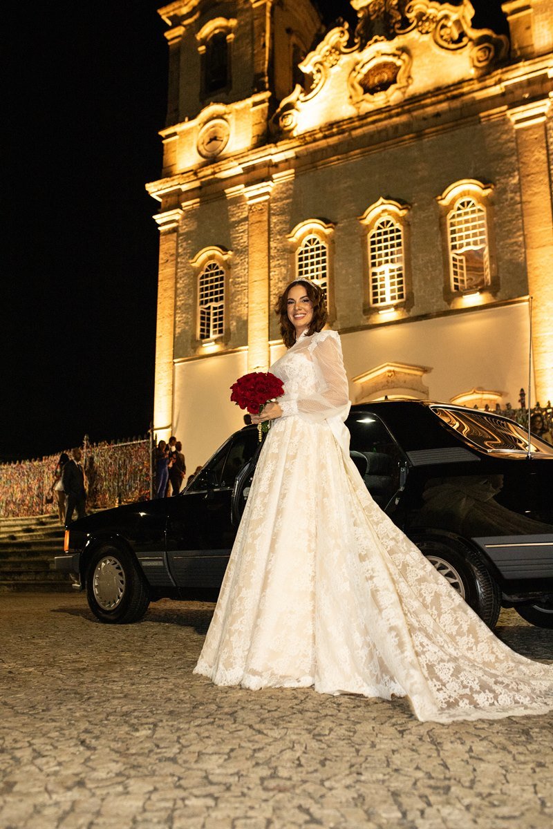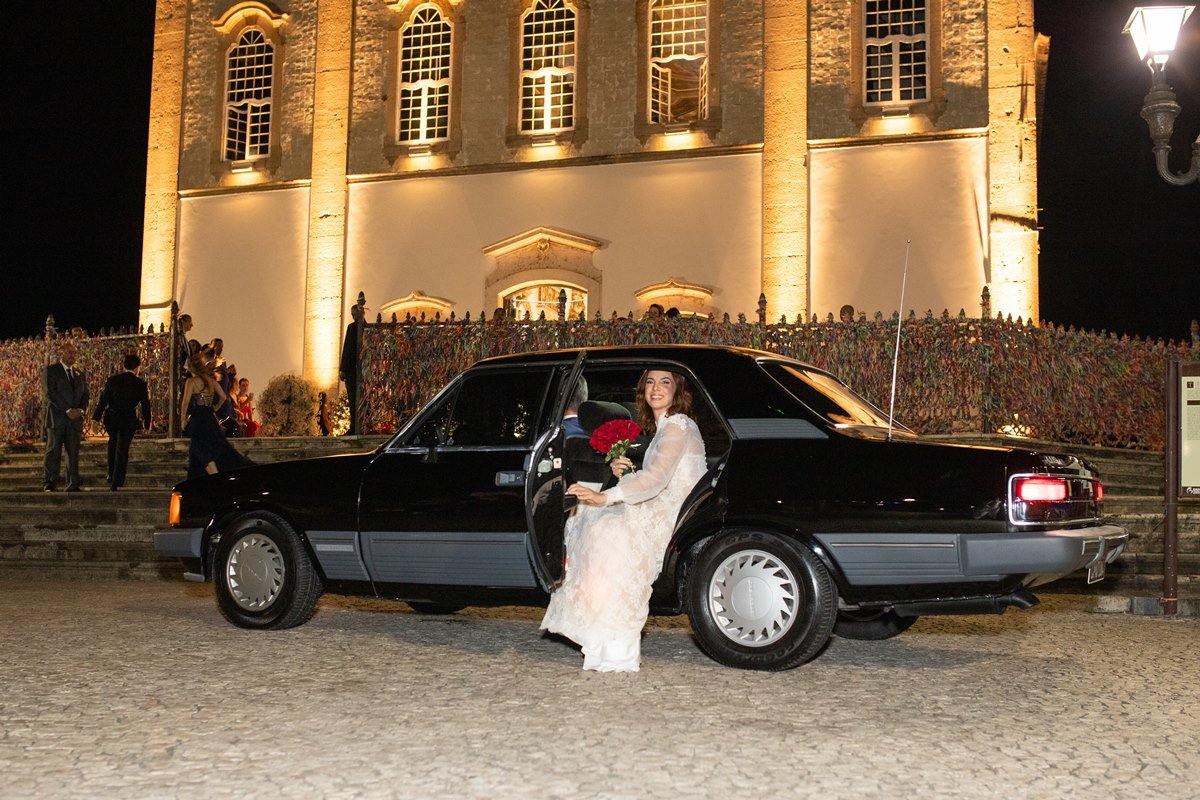 A bordo do veículo do colecionador e presidente do Tribunal de Contas do Estado da Bahia, Marcus Presídio, Lara chegou na igreja. Deslumbrante em um vestido branco e maquiagem que realçaram sua beleza, ela arrancou suspiros de todos os convidados, inclusive do amado, que a aguardava ansioso no altar.