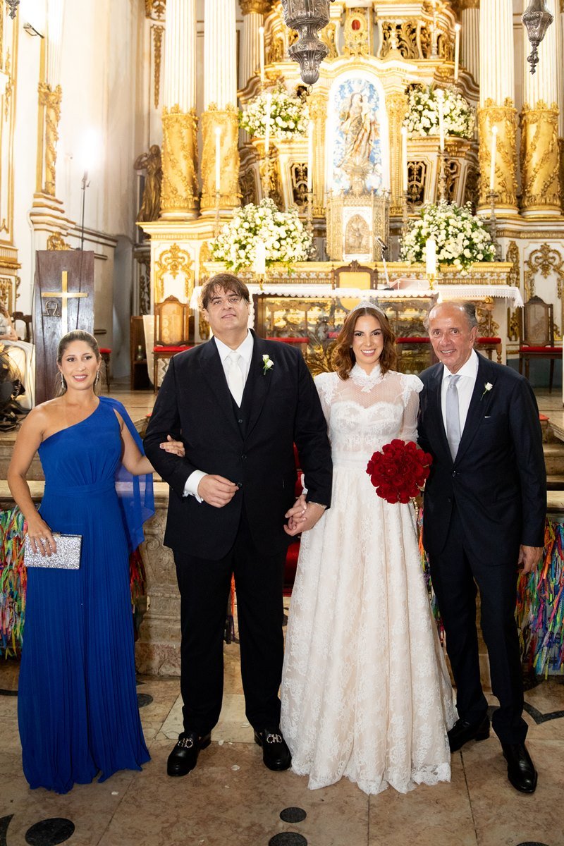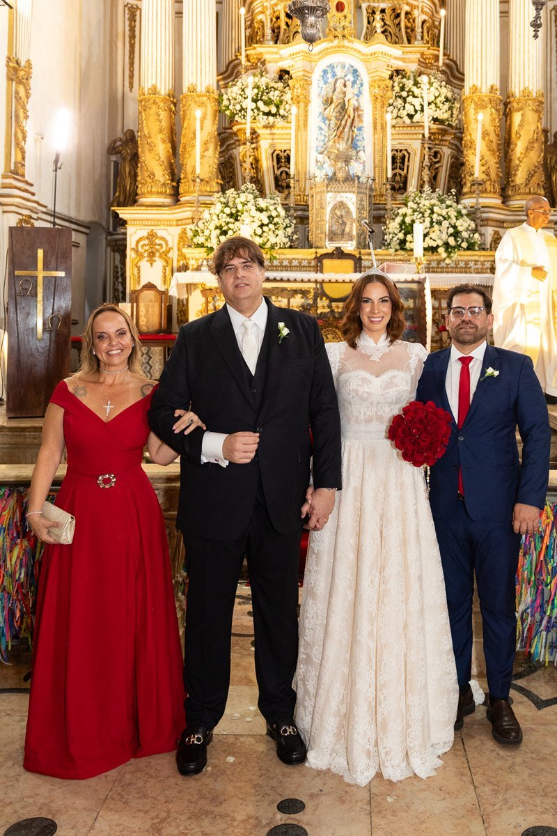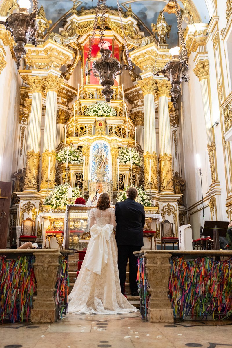 A celebração foi realizada pelo padre Edson Menezes, reitor da Basílica do Senhor do Bonfim há 16 anos. Durante os votos matrimoniais, ele reforçou o poder do amor na formação de uma família, seja nos momentos de alegria, seja nas situações mais difíceis.