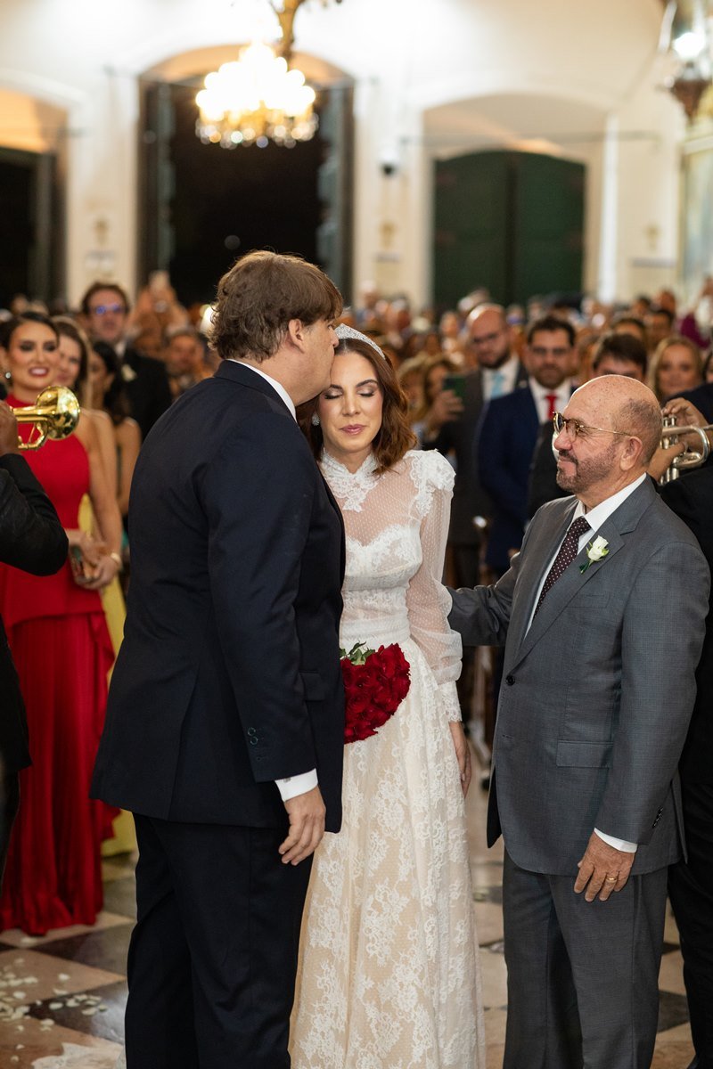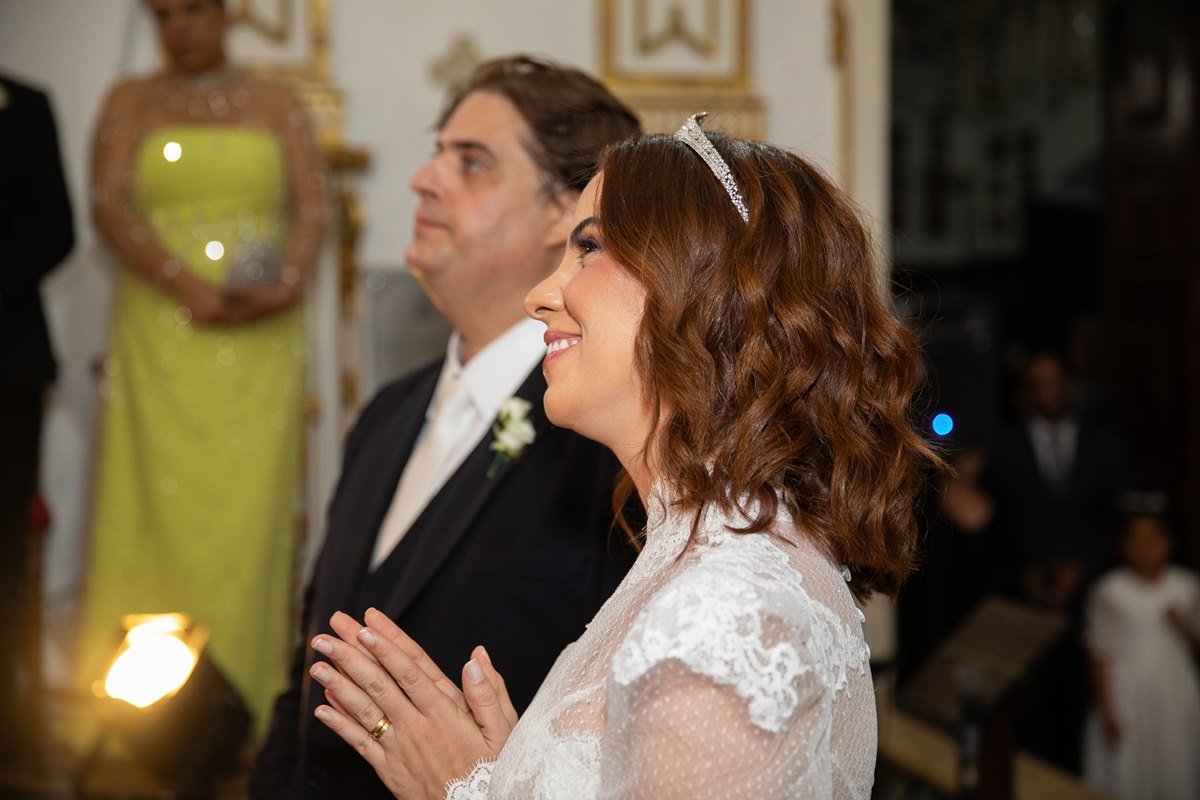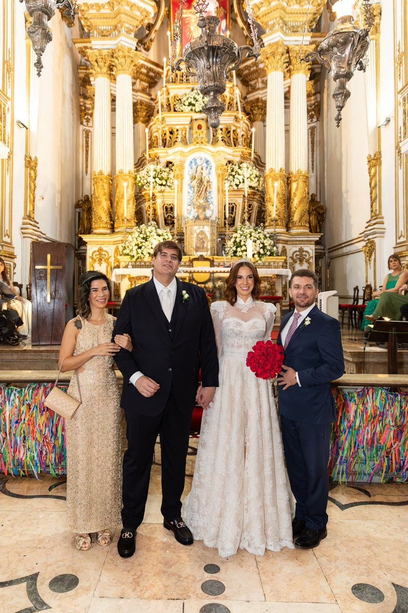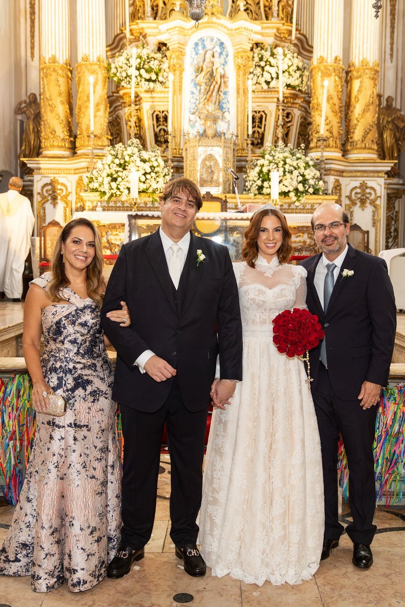 A celebração foi realizada pelo padre Edson Menezes, reitor da Basílica do Senhor do Bonfim há 16 anos. Durante os votos matrimoniais, ele reforçou o poder do amor na formação de uma família, seja nos momentos de alegria, seja nas situações mais difíceis.