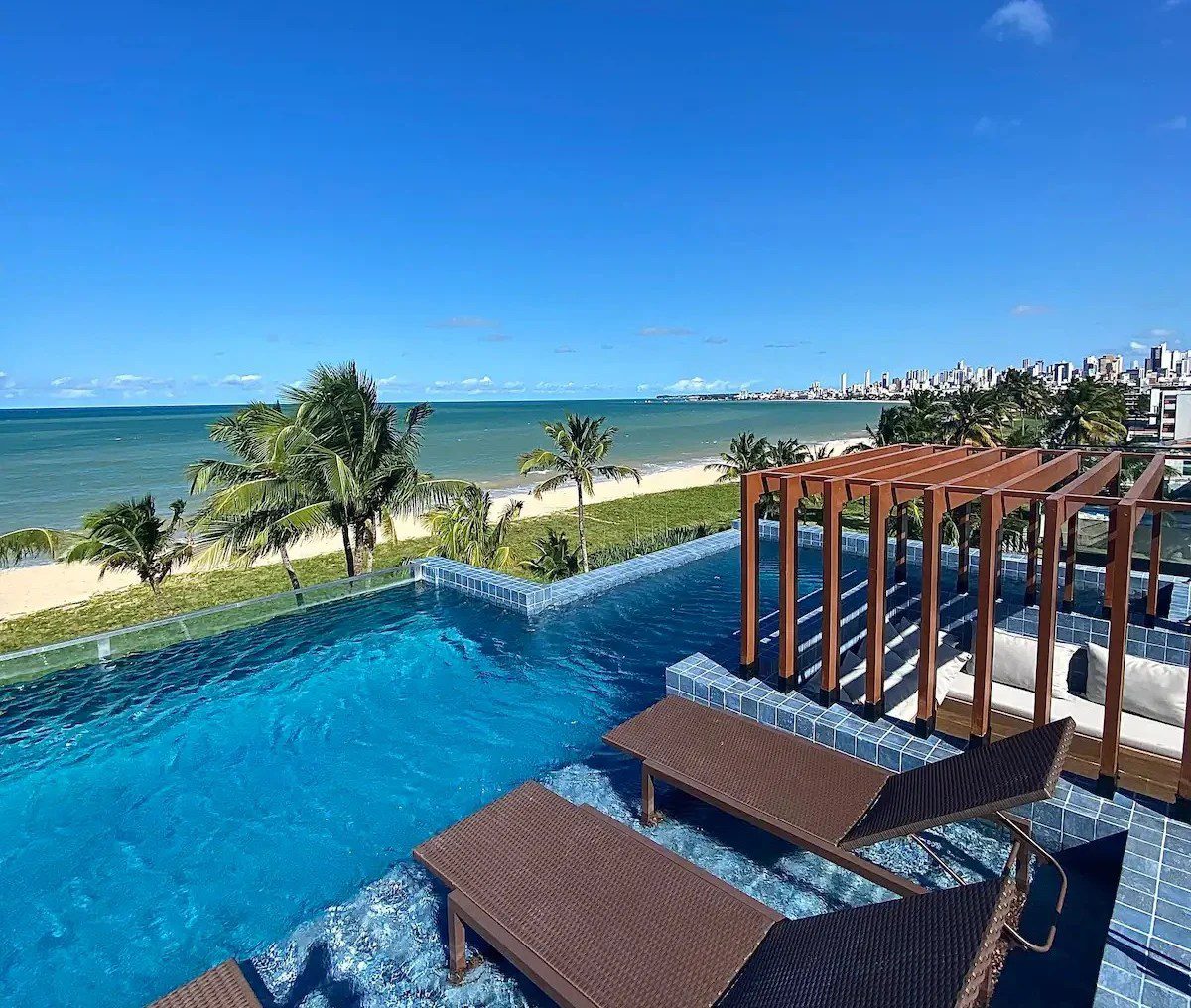 Também na Praia do Bessa, essa hospedagem é ideal para quem viaja em família: são três quartos, dois deles com cama de casal e um com duas camas de solteiro. Outro diferencial é que o apartamento também fica de frente para a praia, com vista desobstruída – e deslumbrante – da orla. As áreas comuns têm piscina de borda infinita, jacuzzi e academia. Reserve aqui.