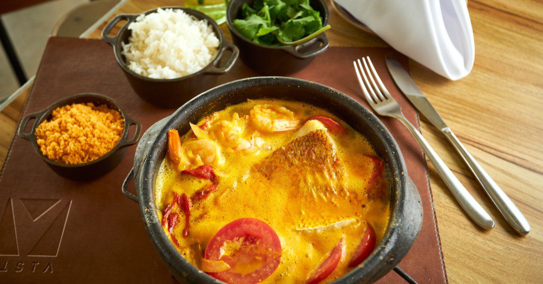 A moqueca está presente no cardápio dos dois endereços do Vista. Na unidade do Ibirapuera, o prato tem camarões e peixe fresco do dia, cozidos em caldo de peixe com leite de coco, dendê, pimentões pelados, tomate, cebola e coentro fresco. Acompanha arroz e farofa. Na filial dos Jardins, inclui também pirão entre os acompanhamentos. Neste endereço há ainda a alternativa vegana, com banana-da-terra, pupunha e castanha-de-caju cozidos em caldo de legumes com leite de coco, mais pimentão, tomates, cebola e coentro.