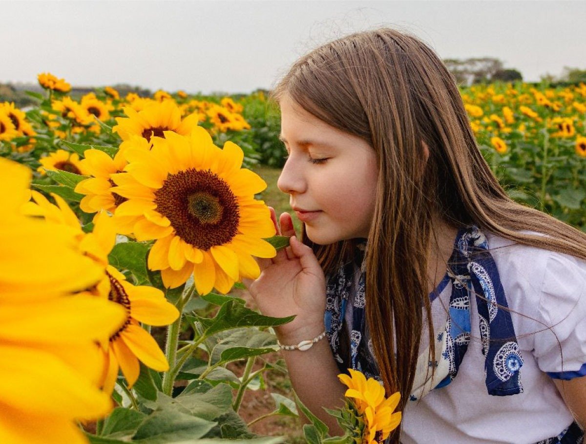 Passeio ao campo de girassóis, perfeito para contato com a natureza