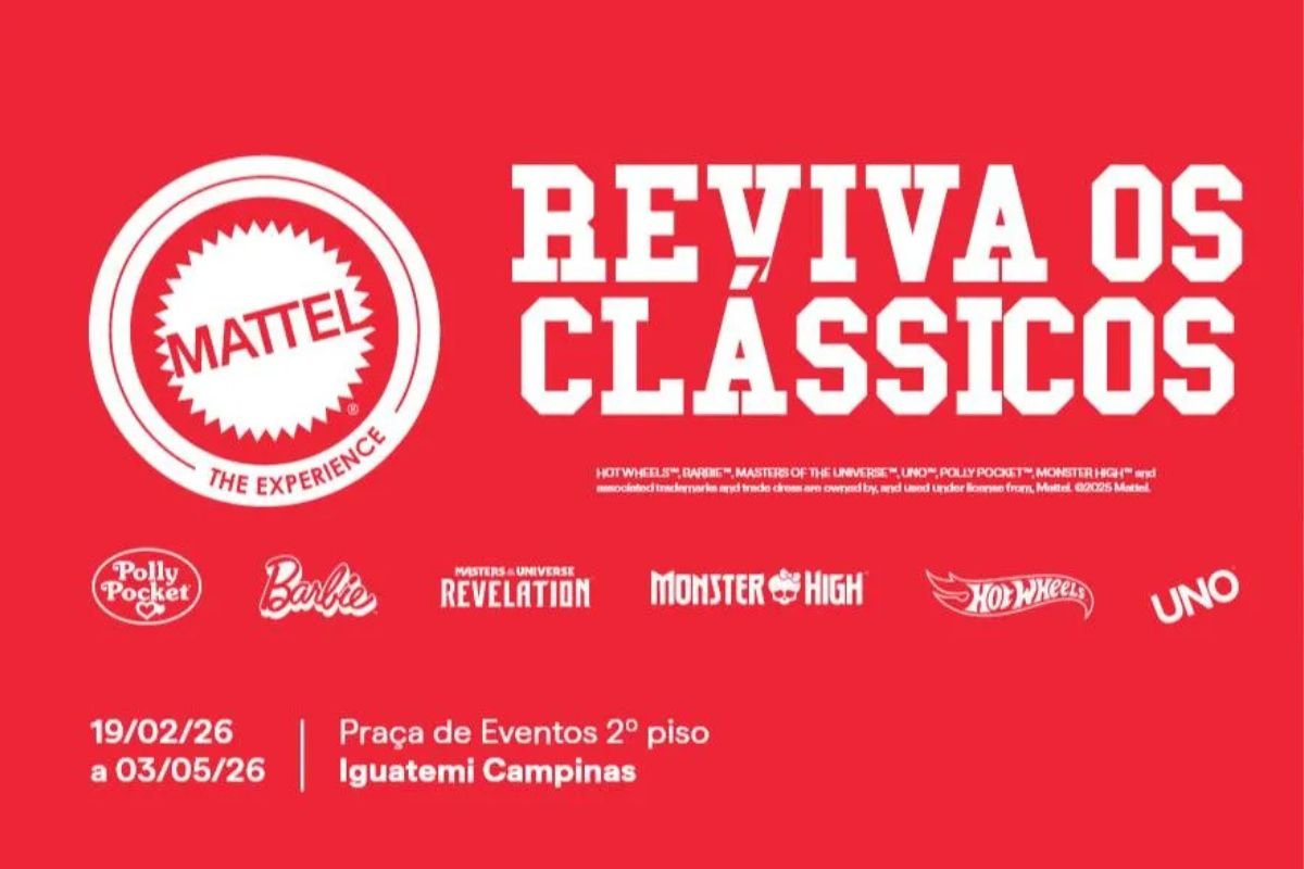 De 19 de fevereiro a 3 de maio, o Shopping Iguatemi Campinas, em Campinas (São Paulo), recebe a Mattel The Experience, uma exposição imersiva dedicada aos brinquedos que marcaram gerações. A atração acontece na Praça de Eventos do 2º piso e convida o público a viver de perto o universo das marcas da Mattel, em um passeio indicado para famílias com crianças, adolescentes e adultos nostálgicos.