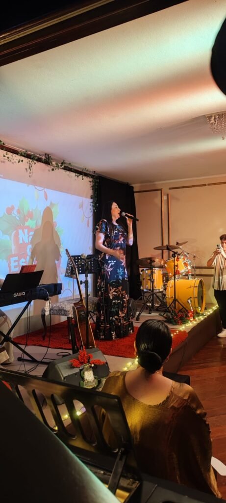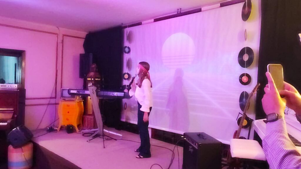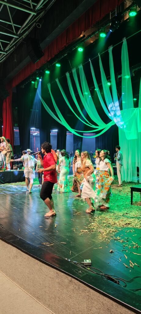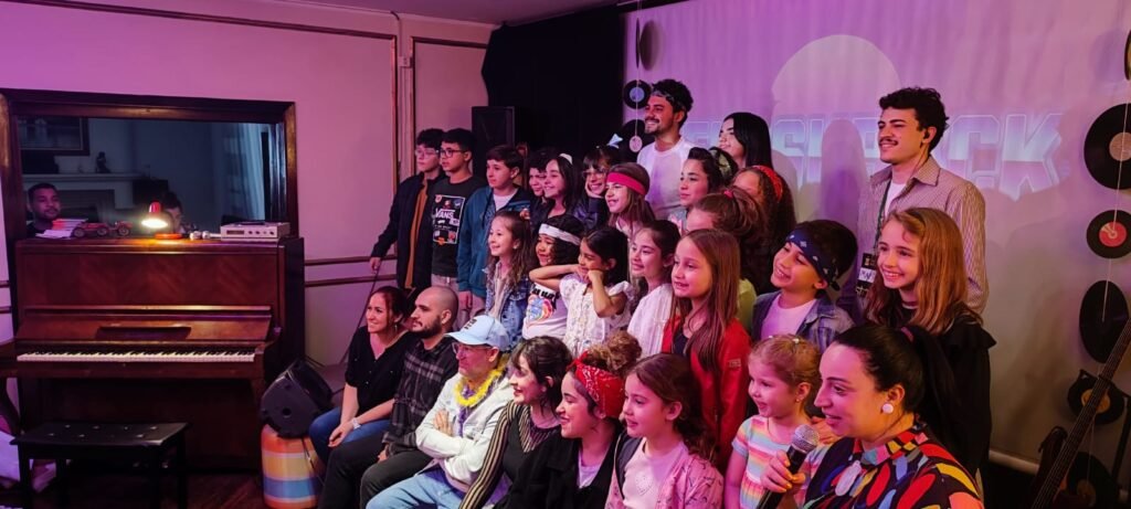 A “Noite no Cinema” marca uma etapa fundamental dessa jornada: é o momento em que os alunos escolhem canções dentro do tema proposto e sobem ao palco para colocar em prática todo o conhecimento adquirido. Esse exercício é essencial para superar a timidez e aprimorar a postura e a impostação vocal, preparando-os para desafios ainda maiores.