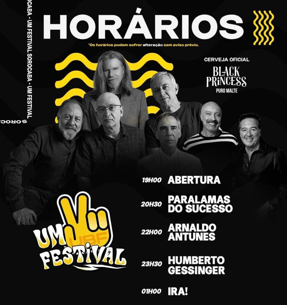 Os Paralamas do Sucesso, Humberto Gessinger, Arnaldo Antunes e a banda Ira! se encontram em um evento histórico da música brasileira neste sábado, 29, na primeira edição sorocabana do “UM FESTIVAL”, que será realizado na Uzna.