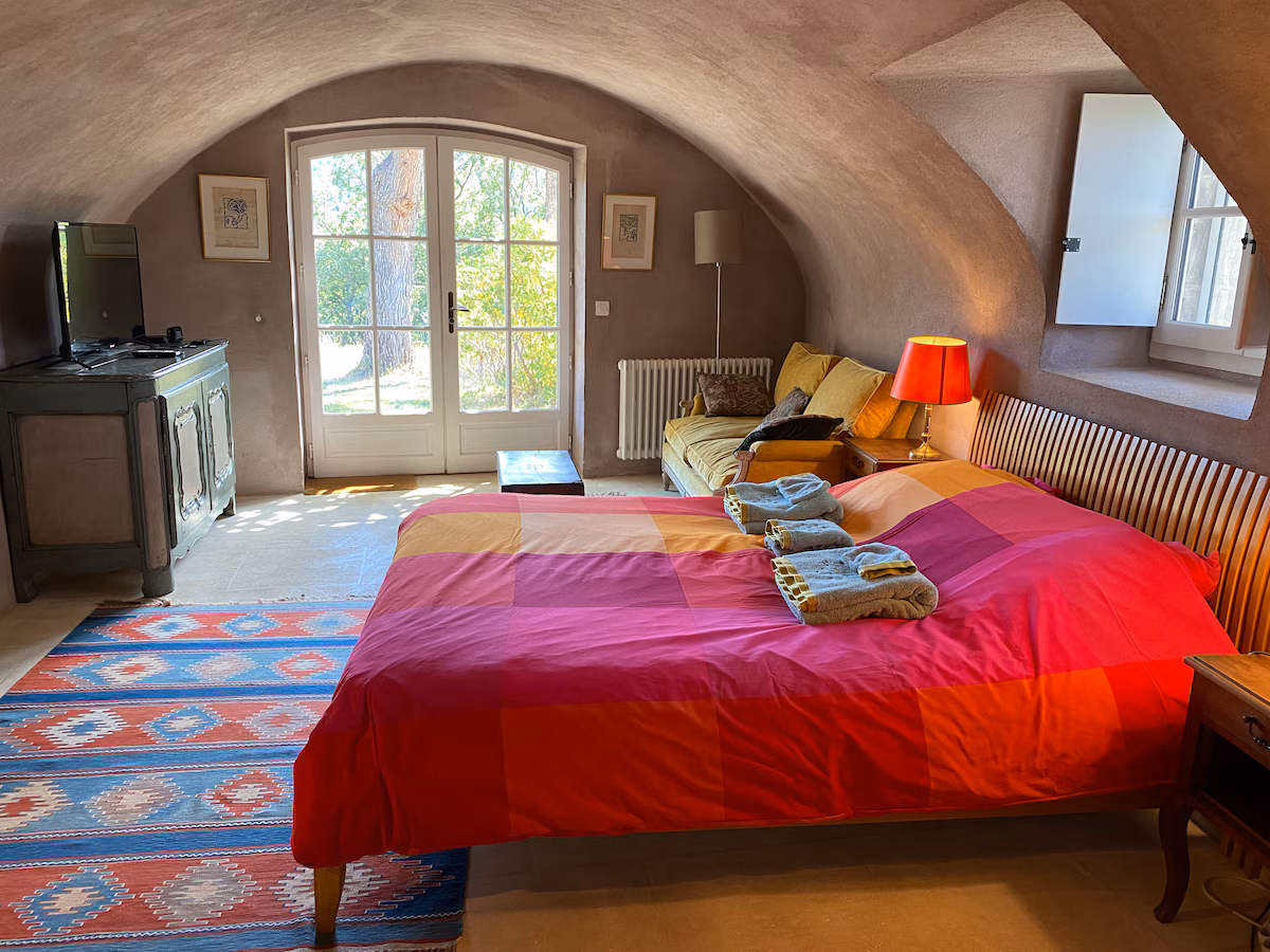 A casa: De frente para o maciço do Luberon, esta casa de campo chama atenção pelo charme rústico das paredes de pedra e pelos cômodos com linhas curvas, que dão personalidade ao lugar. O quarto principal tem cama de casal e sofazinho, sendo bastante iluminado pela luz do sol, enquanto o segundo, com cama extra, também funciona como espaço de leitura. A cozinha é totalmente equipada com ingredientes e eletrodomésticos, convidando os hóspedes a preparar um café da manhã provençal. Do lado de fora, o quintal, os terraços e a piscina são cenários perfeitos para tardes preguiçosas, conversas ao entardecer e para contemplar as paisagens que mudam ao longo do dia. Reserve aqui.