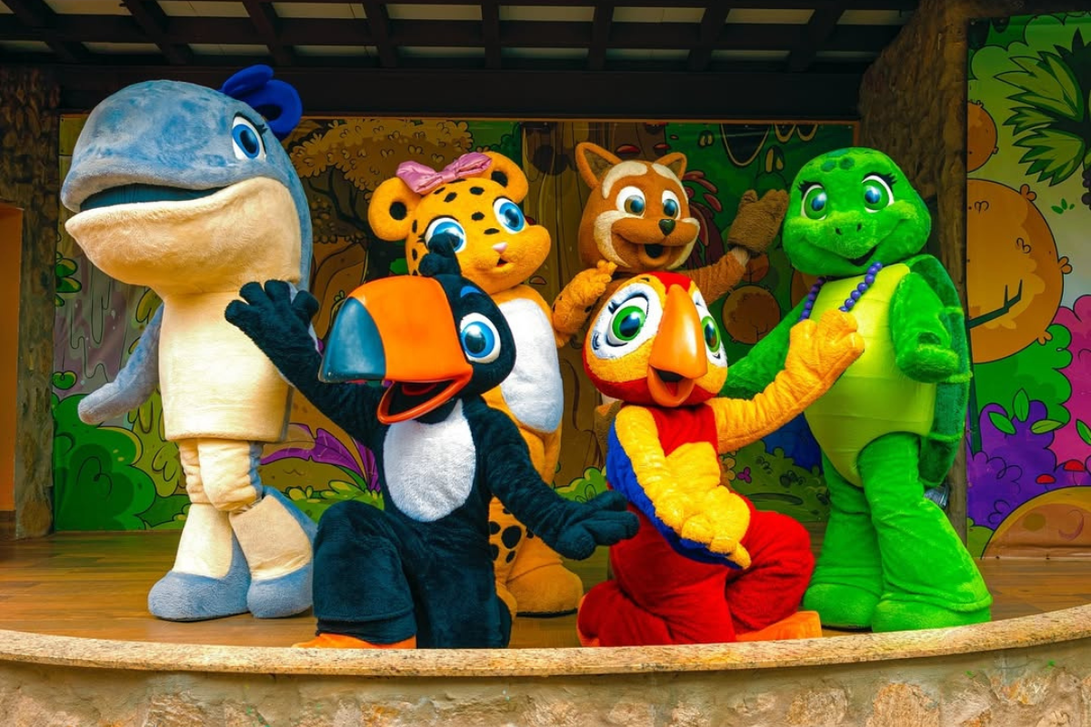 No coração da experiência infantil está a Turminha da Zooeira, personagens exclusivos do resort, inspirados na fauna brasileira, especialmente no Cerrado e no litoral do Nordeste, que transformam cada momento em aprendizado, brincadeira e conexão com a natureza.