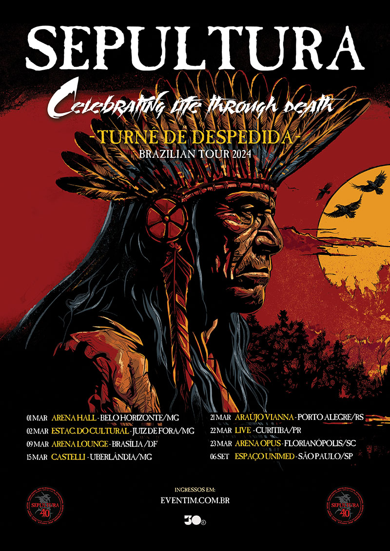 Após 40 anos de uma trajetória vitoriosa, em que levou o nome do Brasil mundo afora e passou pelos palcos mais importantes do mundo, o Sepultura vai parar as suas atividades. Antes, contudo, o grupo formado por Andreas Kisser, Derrick Green, Eloy Casagrande e Paulo Jr vai rodar o globo com uma turnê de despedida. No Brasil, a turnê intitulada “Celebrating life through death” terá realização da 30e. Neste primeiro momento serão oito datas no país. A venda de ingressos começa no próximo dia 11 de dezembro, às 12h, na Eventim. A tour também vai passar pela América Latina e Estados Unidos e novas datas serão anunciadas em breve.