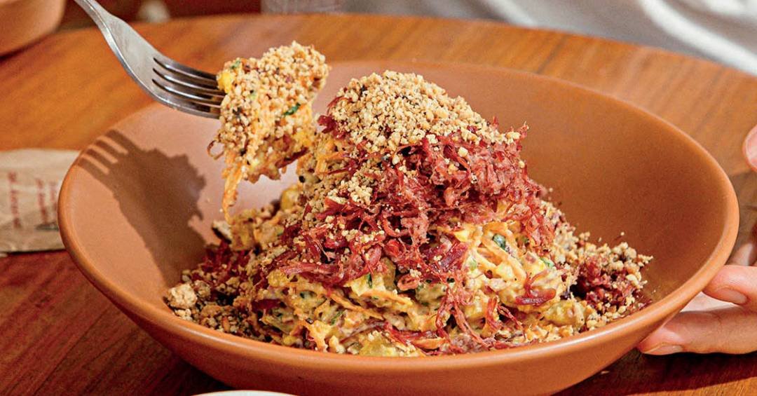 A cumbuca sertão (R$ 50,90) traz batata-doce assada, carne-seca, aipo, cenoura ralada, cebola- -roxa, repolho-roxo, pimentão amarelo e maionese. Vegetariana, a cumbuca sertãozinho (R$ 42,90) tem os mesmos ingredientes sem a carne-seca.