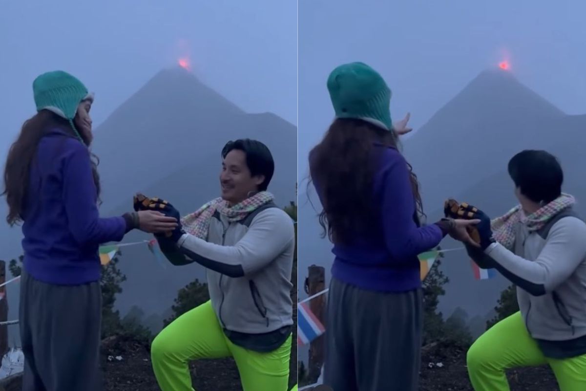 Enquanto ele se ajoelhava e se declarava, o Vulcão de Fuego, ao fundo da filmagem, entrou em erupção, deixando todos maravilhados.