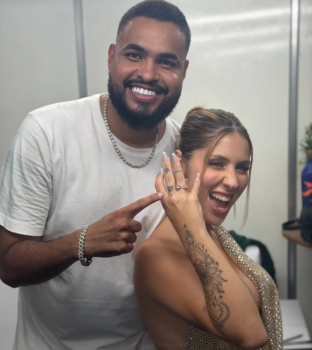 Yan Costa e Bárbara Gerstner mostram a aliança de noivado